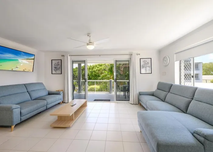 Expansive Coolum Beach Apartment dispose d'un balcon et d'une cuisine entièrement équipée, ainsi que de conforts tels qu'une climatisation et un lave-linge. L'appartement comprend une machine à laver pour votre confort. Un sèche-cheveux sont disponibles.